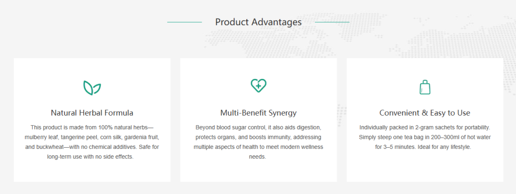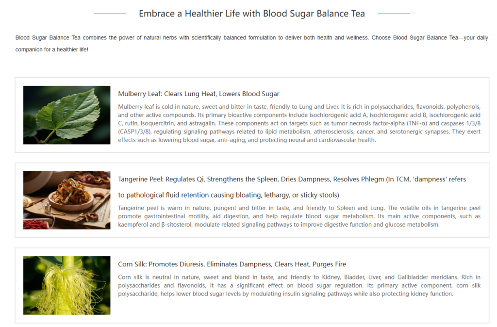 The Blood Sugar Balance Tea formula follows the traditional Chinese medicine principle of “sovereign, minister, assistant, and envoy” compatibility, where ingredients work synergistically to lower blood sugar and promote overall wellness.
