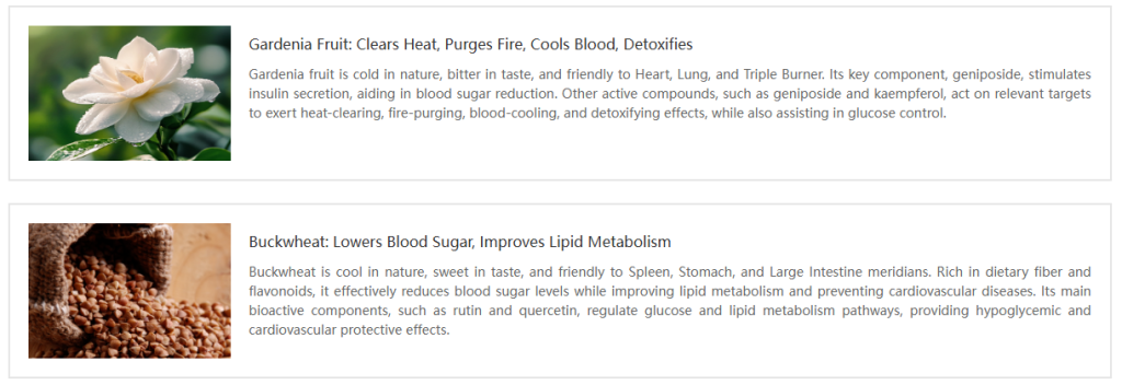 Mulberry leaves, Orange peel, Corn silk, Gardenia, Buckwheat